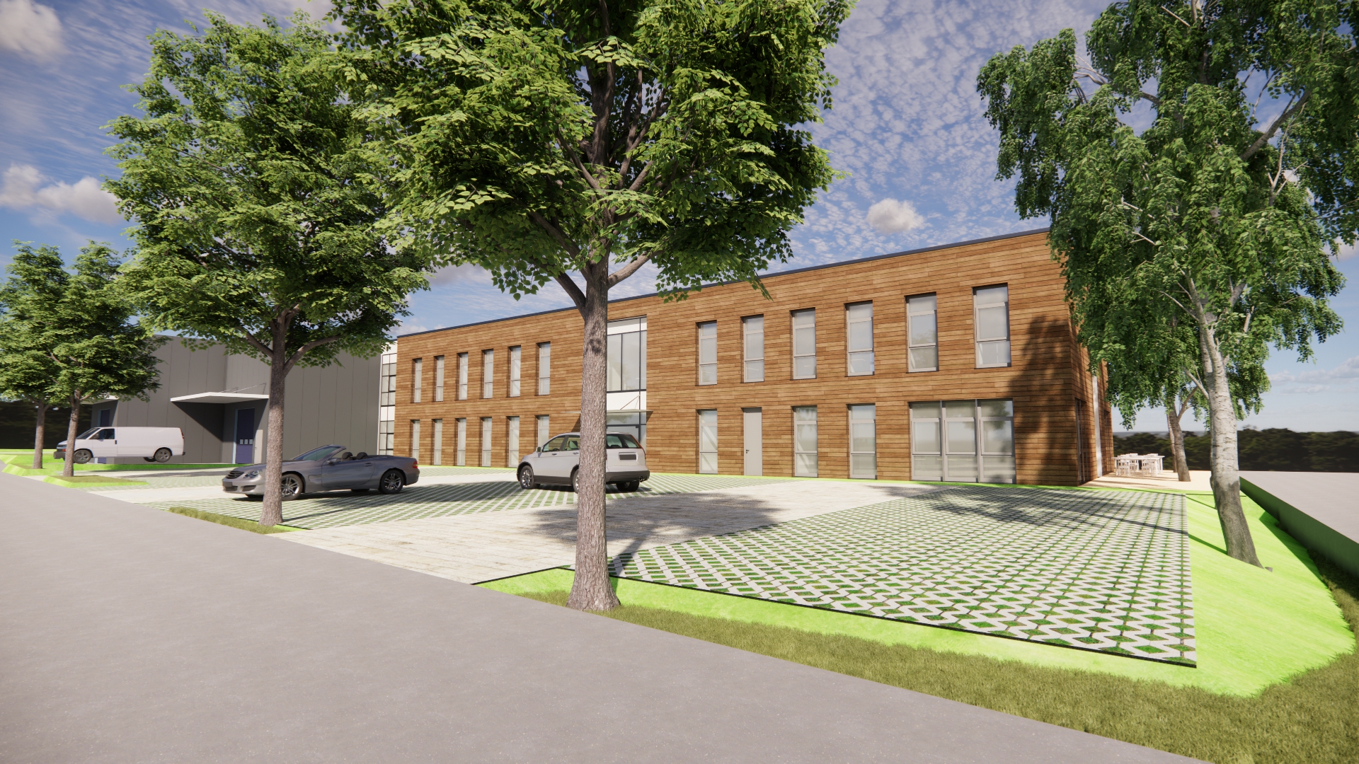 Bürogebäude mit angegliederter Lagerhalle. Vor- u. Entwurfsplanung, detaillierte Budgetplanung.