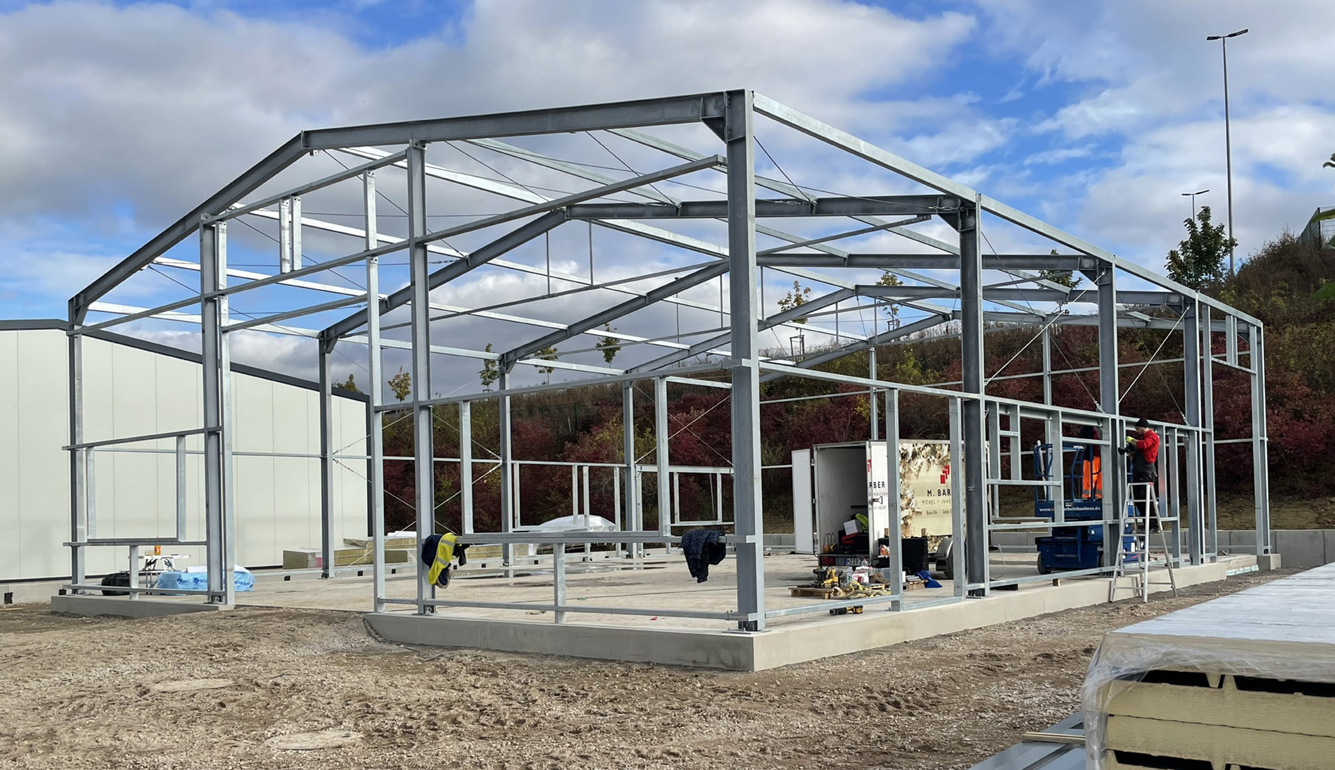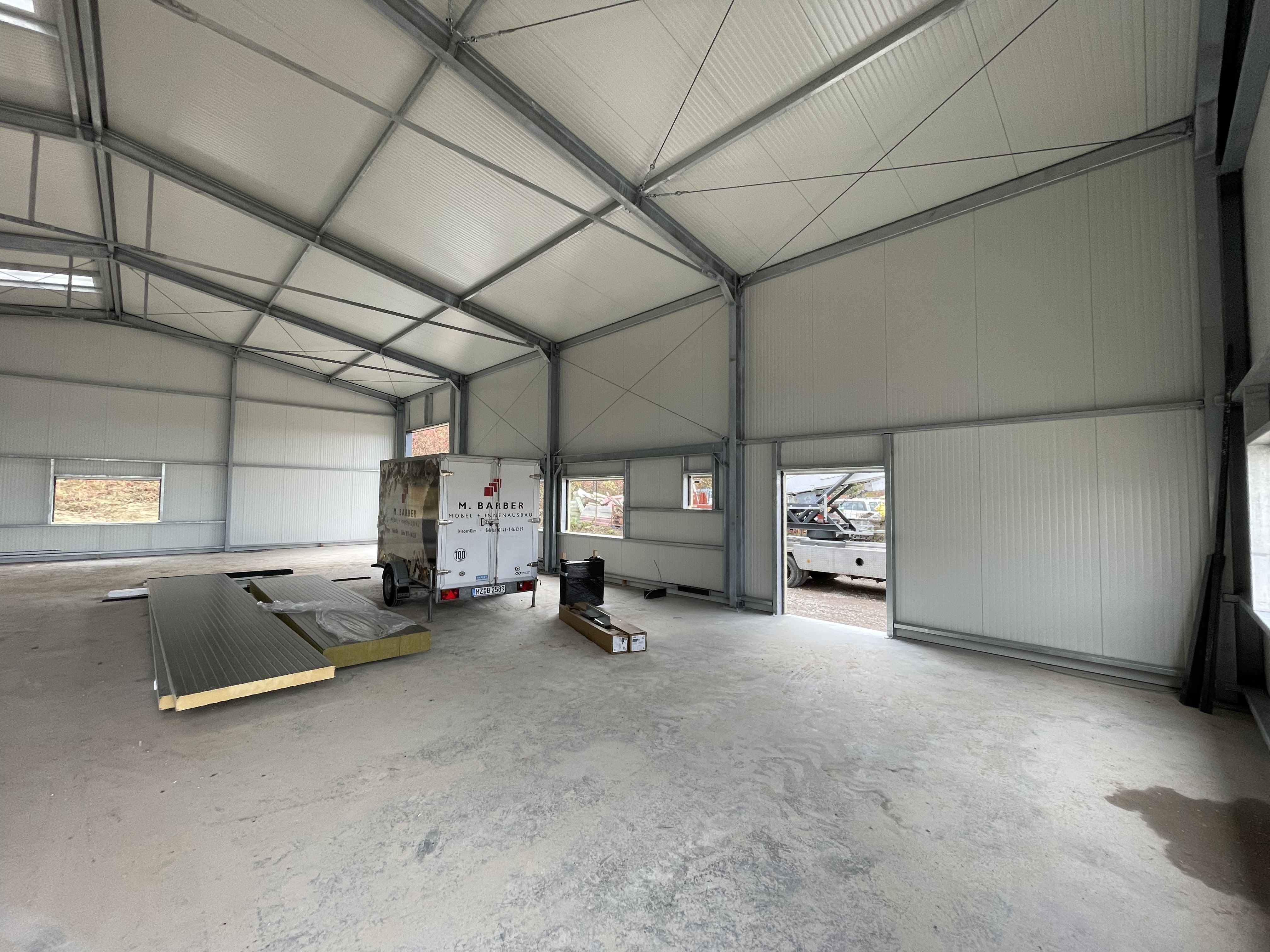 Einfache Lager und Montagehalle, mit Büroeinbau, Lagerempore. Photovoltaik und Luftwärmepumpe.